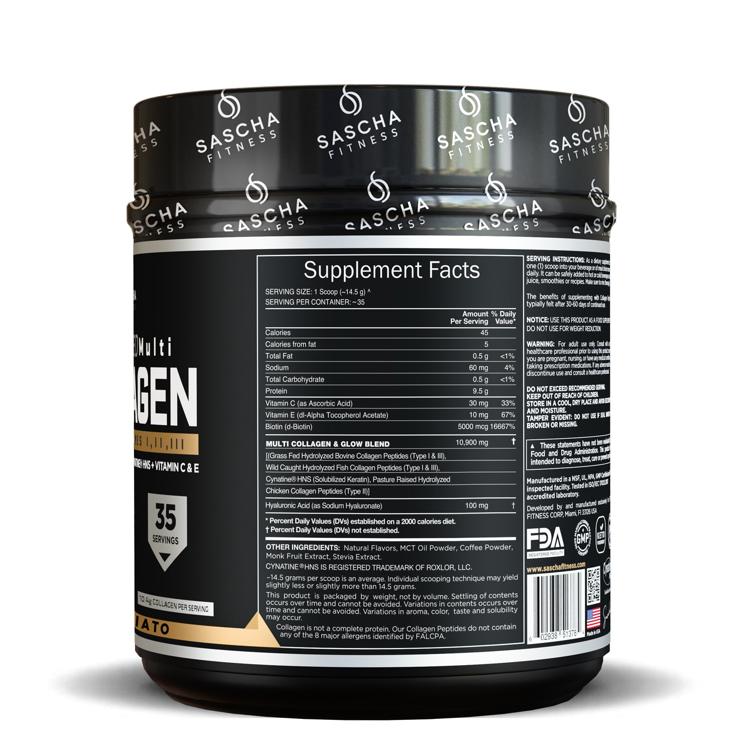 El colágeno no es una proteína completa. Use este producto solo como un suplemento alimenticio. No lo use para la reducción de peso. Este producto se elabora en una instalación que procesa ingredientes de soya, lácteos, huevo, trigo, maní y nueces.