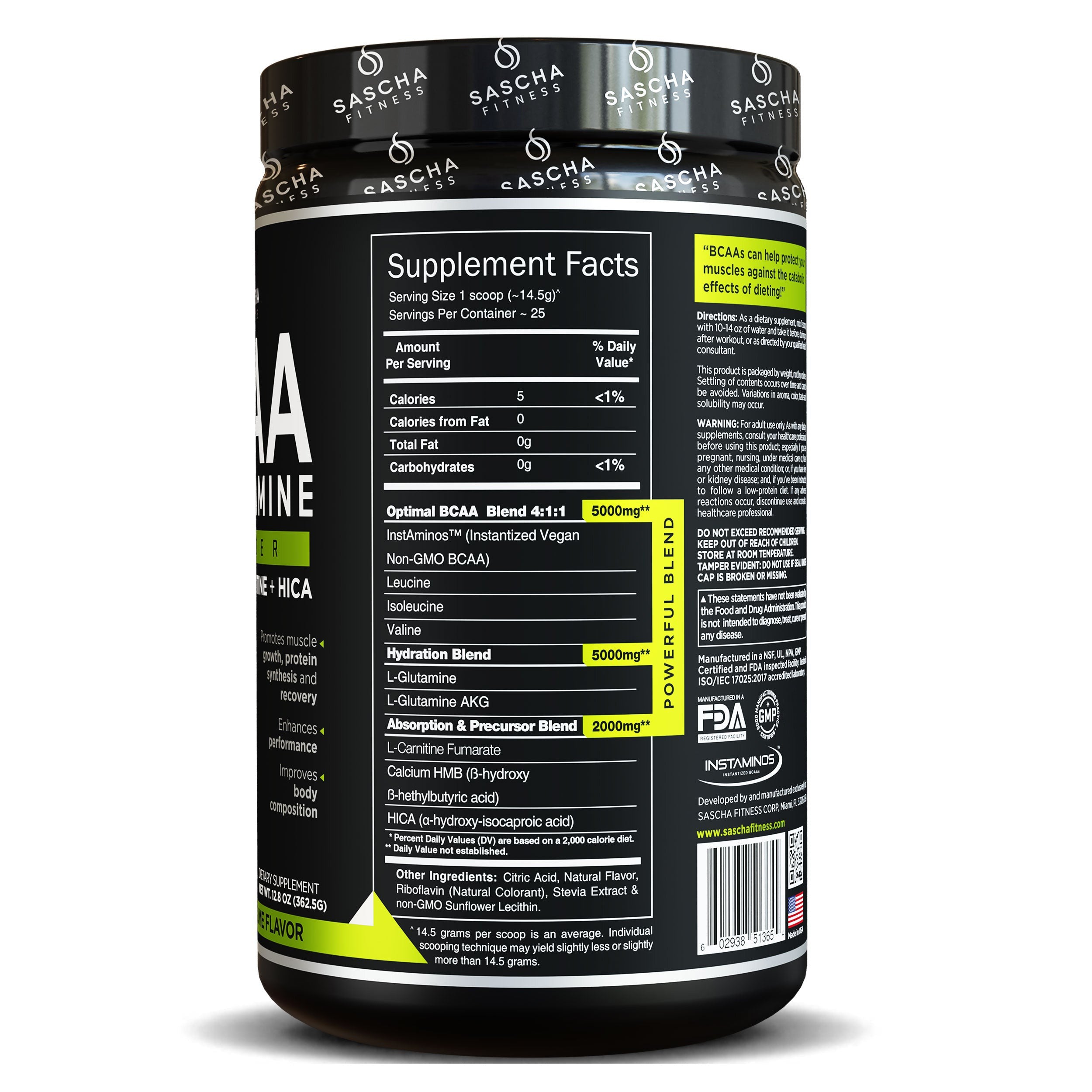 Sascha Fitness BCAA’s es lo último en suplementación para el entrenamiento. Esta mezcla única y poderosa de aminoácidos mejora el rendimiento y la recuperación como ninguna otra. También te proporciona energía limpia y duradera para superar incluso los entrenamientos más intensos, sin estimulantes y sin efectos secundarios incómodos como temblores. Puede ayudarte a mejorar la composición corporal, aumentar la masa muscular y también apoyar la pérdida de grasa.